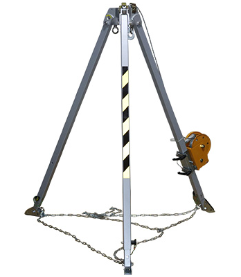 冠航救援三脚架可以单独使用,也可以与手摇绞盘、安全绳索、滑轮、防坠器等工具搭配使用,由于工作场合及工作要求不同,搭配使用的工具也会不同。