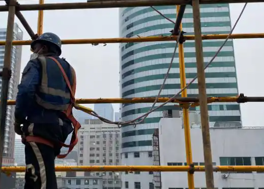 每个工人都牢牢地将防坠器佩戴在身上,遵循高挂低用原则。这小小的装置,宛如忠诚的卫士,时刻守护着他们。一旦有意外发生,防坠器会瞬间启动,紧紧锁住,避免工人坠落。
